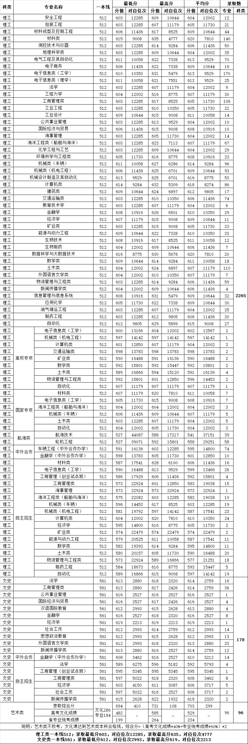 武汉理工大学2018年各专业录取分数线(湖北省)