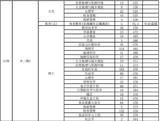 山西师范大学2019年在山西省各专业录取分数线