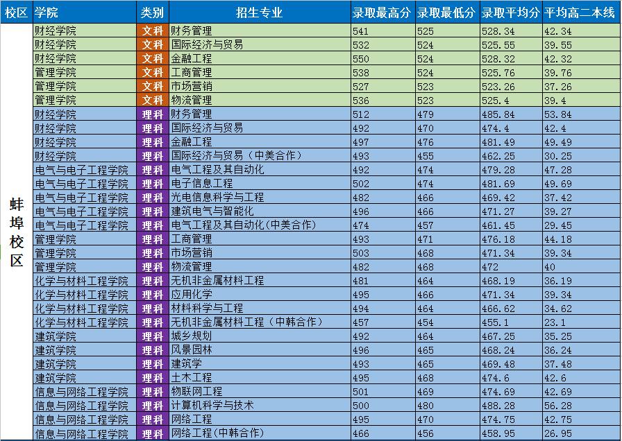 安徽科技学院2018年安徽省普通高考分专业录取分数线