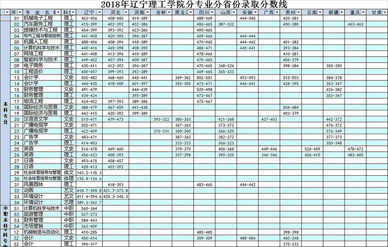 辽宁理工学院2018分省分专业录取分数线