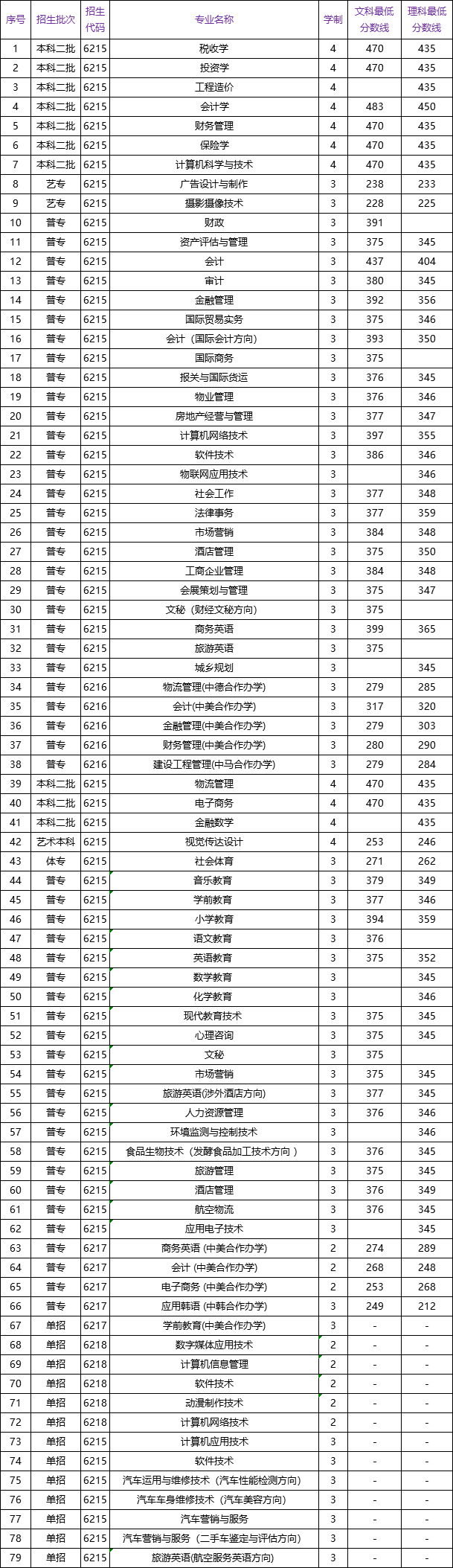 河南财政金融学院2017年招生本、专科各专业最低录取分数线