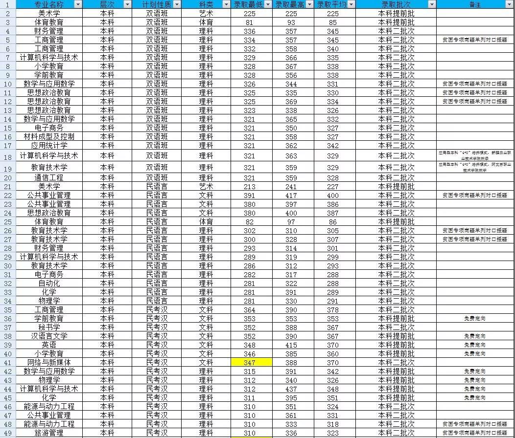 昌吉学院2018年各专业录取分数线情况统计表(新疆)
