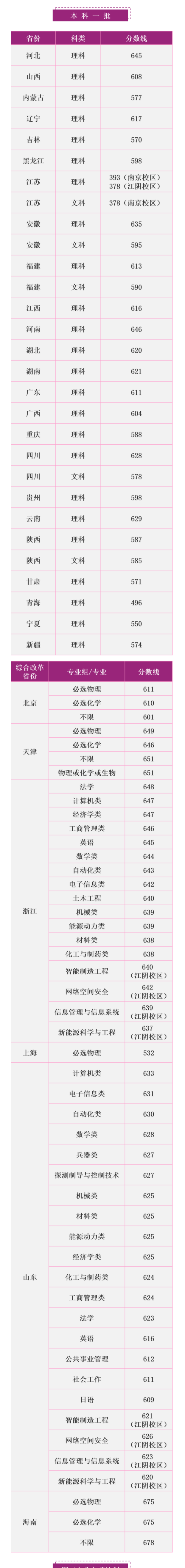 以下是为大家整理的2020南京理工大学录取分数线,包含普通类、中外合作、国家专项、高校专项、少数民族预科班、军工专业专项计划和艺术类分数线,分为文科和理科,供大家参考: