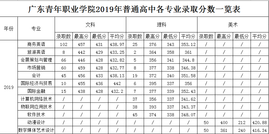 我院2019年普通高考第三批专科录取最低控制分数线为