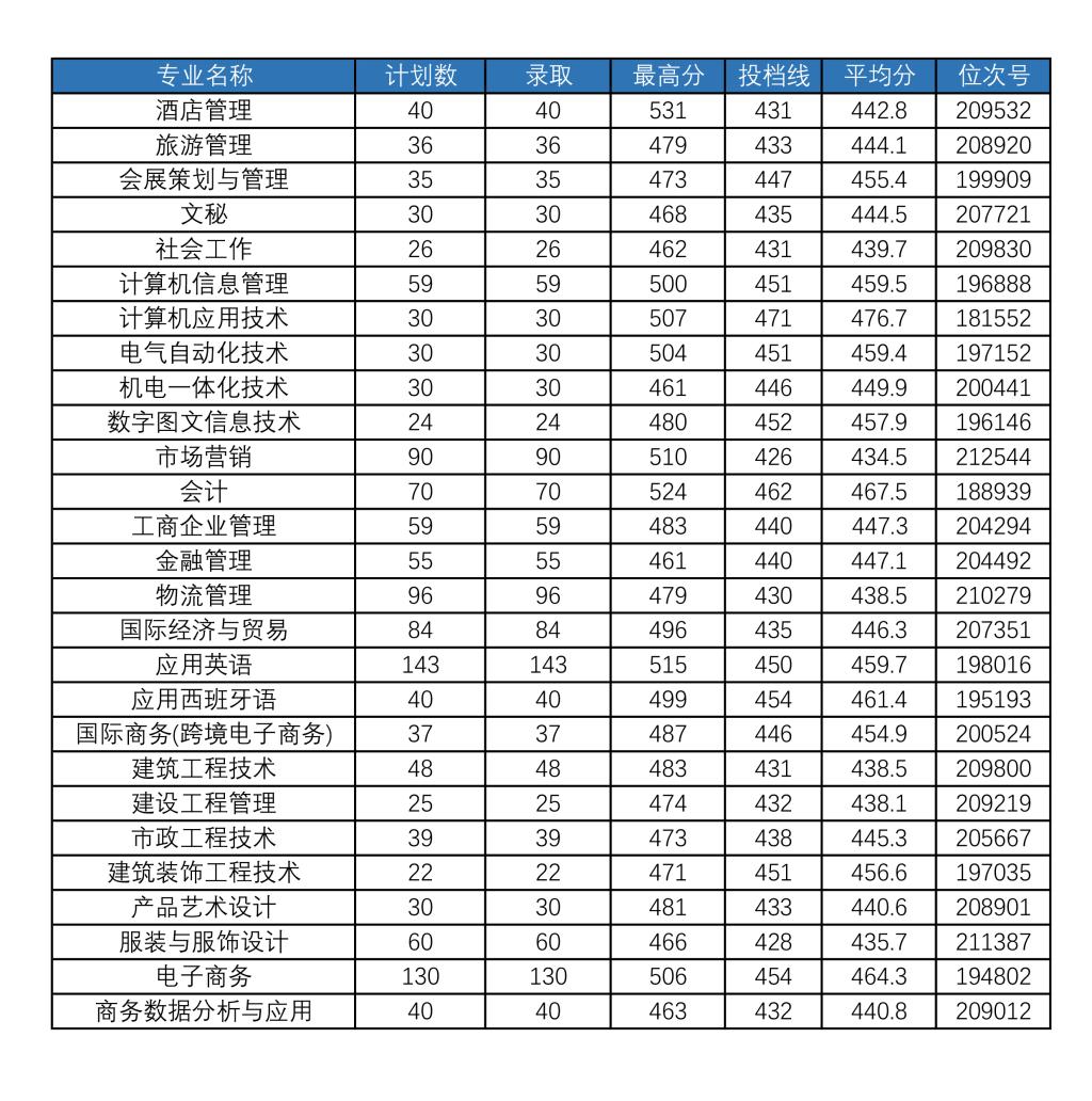 2019年我校外省高职(专科)批录取最高分、最低分、平均分