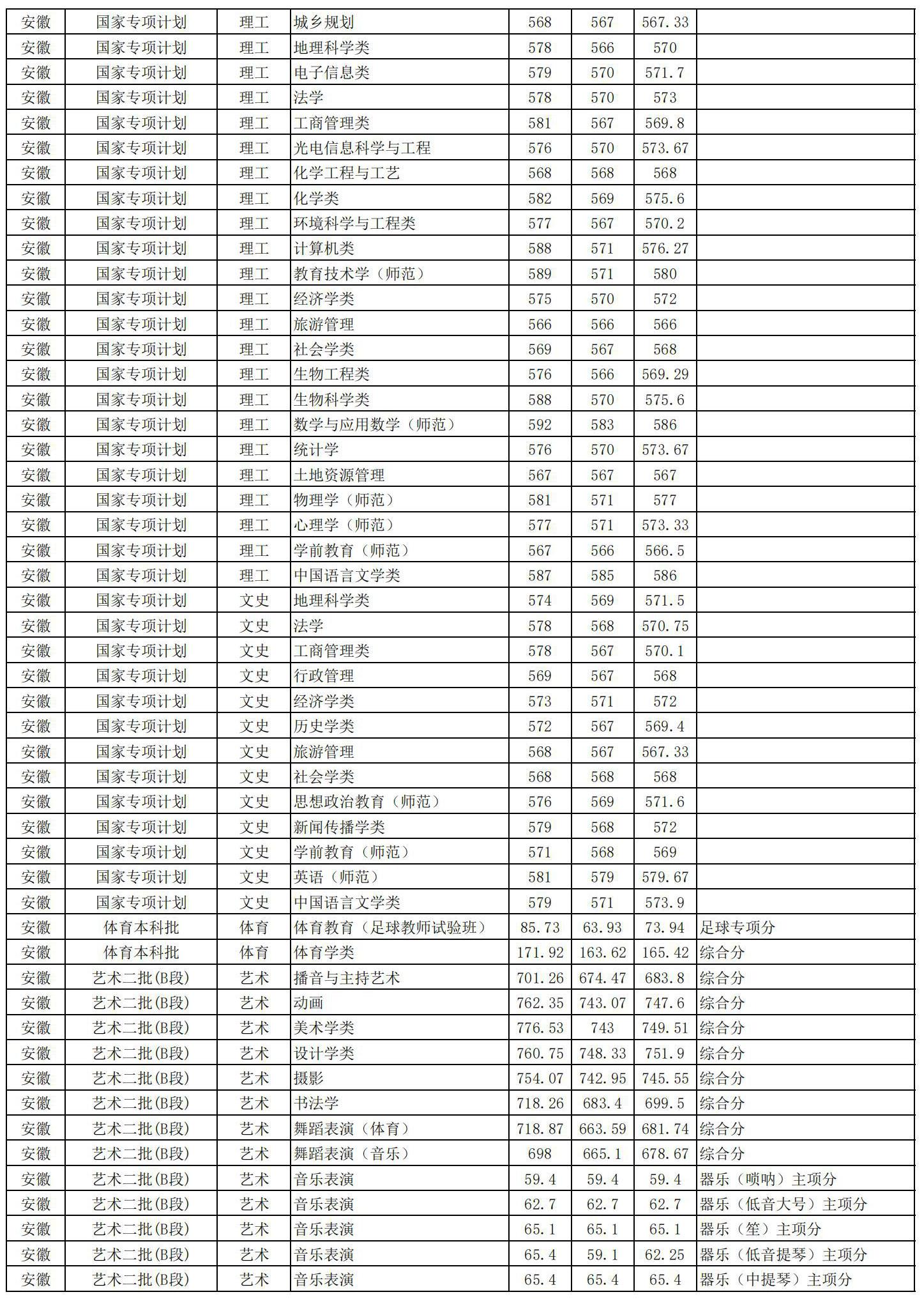 以下是小编为大家整理的2020安徽师范大学录取分数线,包含普通类、地方专项、国家专项和艺术体育类分数线,以及全国各专业分数线,分为理科和文科,供大家参考: