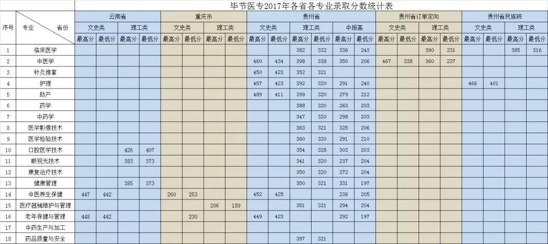 2017毕节医学高等专科学校录取分数线【全国】