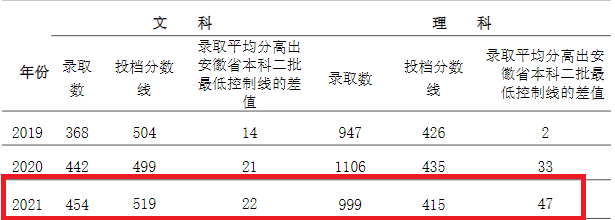 学校普通文理科专业均在安徽省本科第二批次招生,二本批次生源充足,省内文理科专业理科录取平均分462分,高出安徽省本科二批最低控制线47分(投档线415分);省内文科录取平均分541分,高出安徽省本科二批最低控制线22分(投档线519分)。