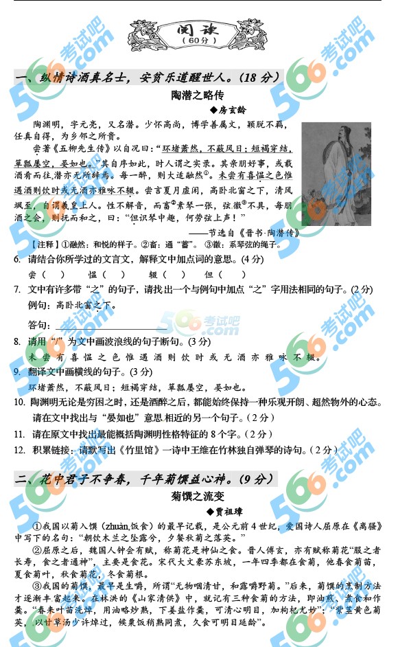 精英中考网www.91post.com消息:2017年宜昌市中考已经结束,又有一批新的初三考生即将参加2018宜昌中考,为了帮助广大师生更好的备考,小编收集整理了历年宜昌中考试题及参考答案,供广大考生参考,下面是2017宜昌中考语文试题及参考答案