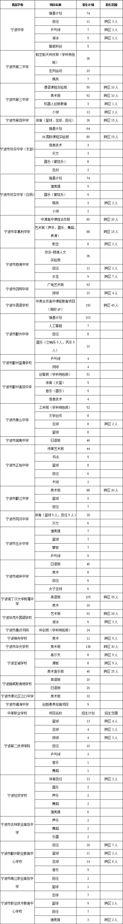 2020年宁波市普通高中城区自主招生计划及中职学校特长生招生计划