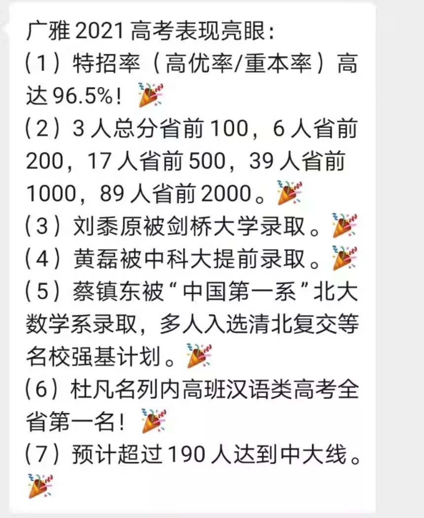 2021广雅中学高考喜报成绩、本科特控线上线人数情况