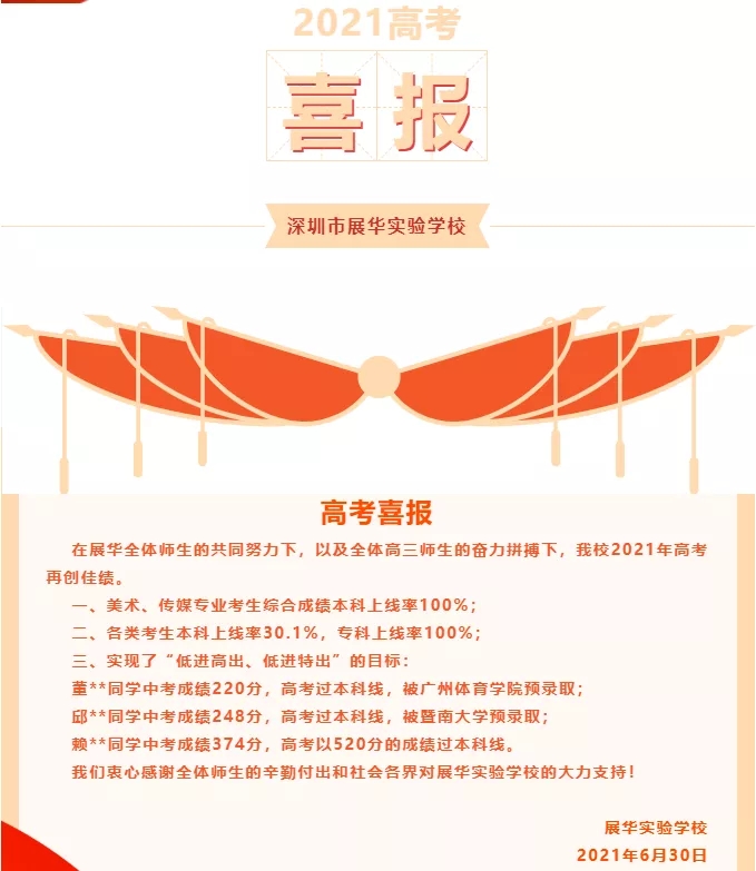 2021深圳展华实验学校高考喜报成绩、本科特控线上线人数情况