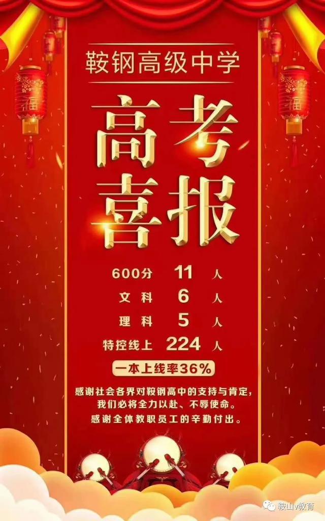 2020鞍山鞍钢高中高考喜报成绩、本科一本上线人数情况