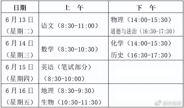 2023昌邑中考时间